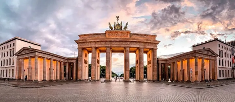 The Brandenburg Gate, a neoclassical arch with a chariot atop, once divided East and West. Which country?
