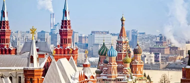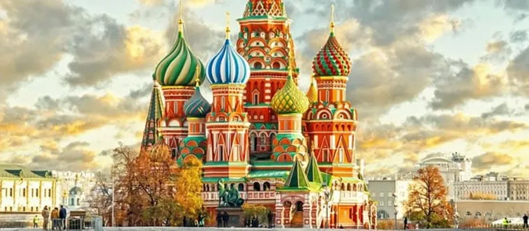The Red Square with Saint Basil’s Cathedral, known for colorful onion domes, is a historic plaza. Which country?