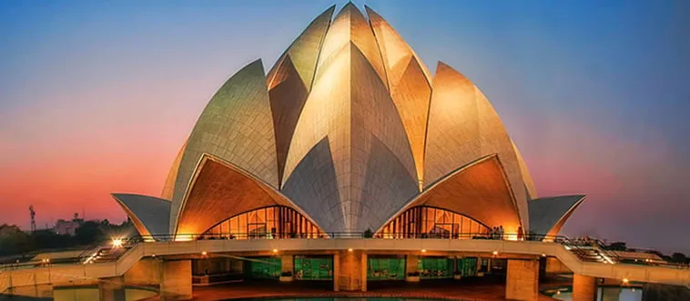 The Lotus Temple, a Bahá’í House of Worship shaped like a blooming flower with 27 marble petals. Which country?