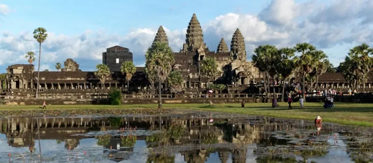 The Angkor Wat, a massive temple complex with five lotus-shaped towers, is the world’s largest religious monument. Which country?