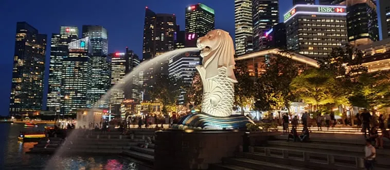 The Merlion, a half-lion, half-fish statue spouting water, is a national symbol by the bay. Which country?