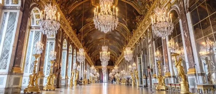 The Palace of Versailles, with Hall of Mirrors and vast gardens, was a royal residence. Which country?