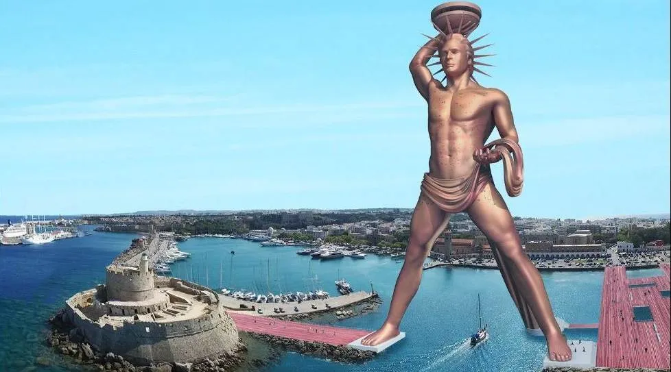 What ancient wonder was a giant statue on the island of Rhodes?