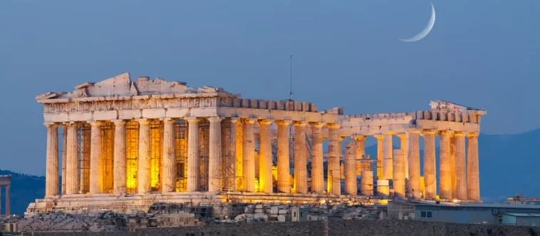 Which city crowns the Acropolis with Parthenon?