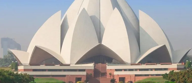 Which city gleams with Lotus Temple's petal design?