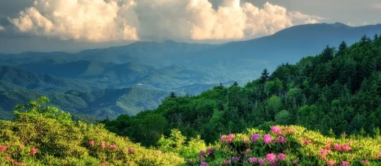 What is the name of the famous ridge in Tennessee and North Carolina known for its scenic balds?